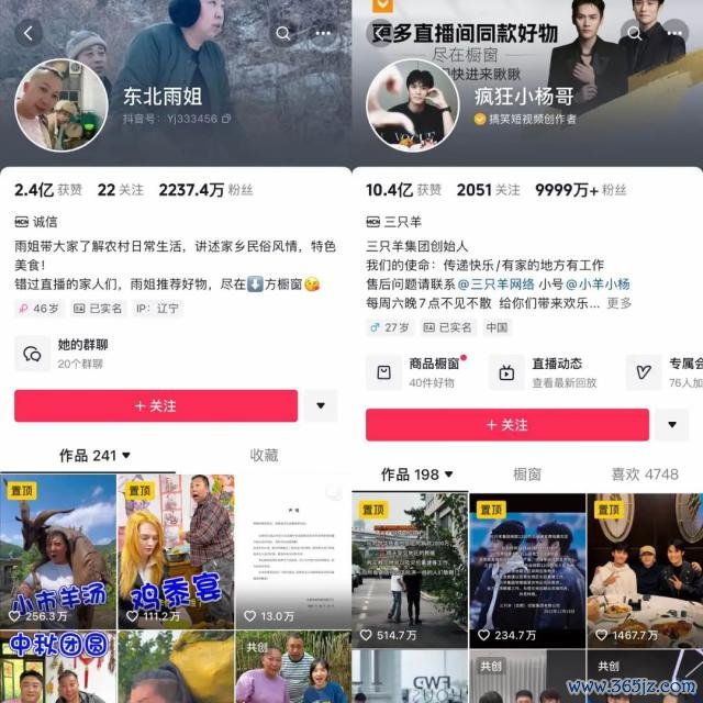 图:"东北雨姐"和"跋扈小杨哥"抖音主页 开始:抖音 《听筒 Tech》截图