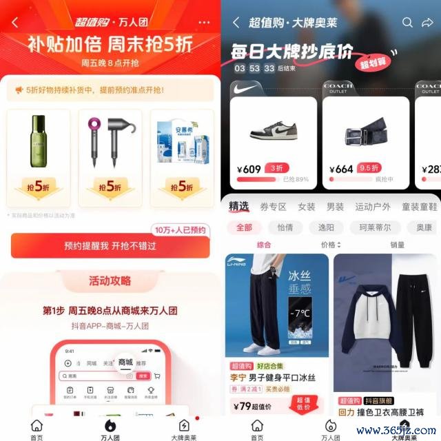 图:抖音商城的"万东谈主团"及"大牌奥莱"开始:抖音 《听筒 Tech》截图